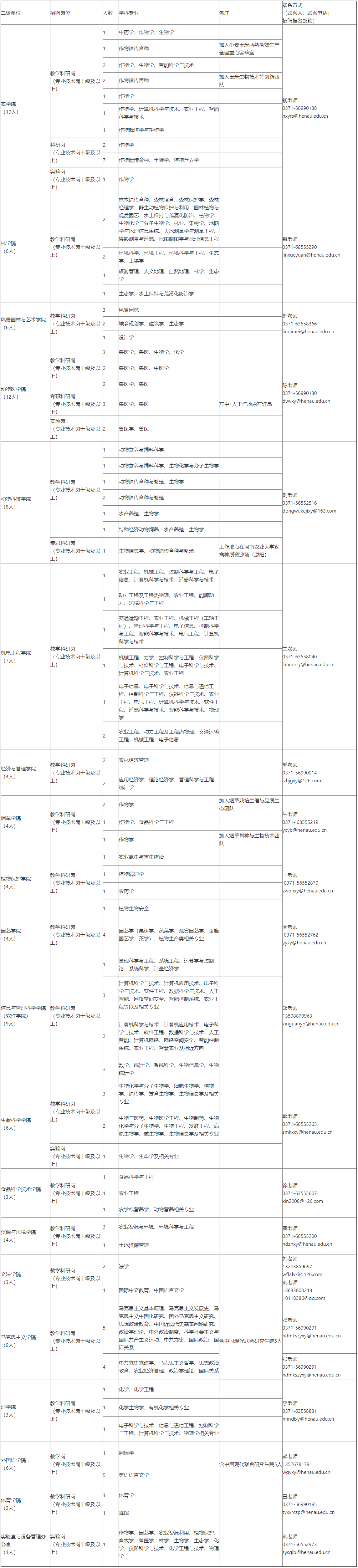 招聘方案同时发布在河南省人力资源和社会保障厅网站(https://hrss.henan.gov.cn/)和河南农业大学人事处网站(https://rs.henau.edu.cn/)。招聘信息2025年度有效,我校将根据岗位报名情况,分批实施考核、体检、考察等程序。