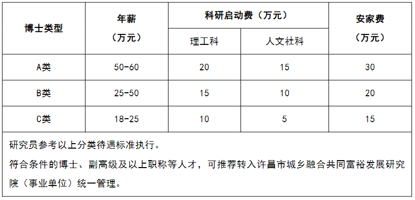 1.全职引进青年人才,具有副高级及以上职称者,推荐纳入许昌市人才专项事业编制,享受工资、福利、社保及退休待遇。