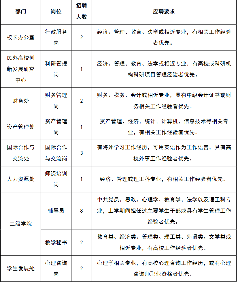 3.热爱教育事业,具有奉献精神和服务意识,能适应民办高校办学特点和工作节奏。