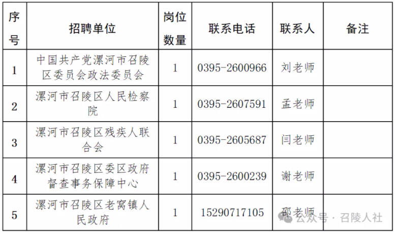 2、本公告未尽事宜,由召陵区人社局和各用人单位负责解释。